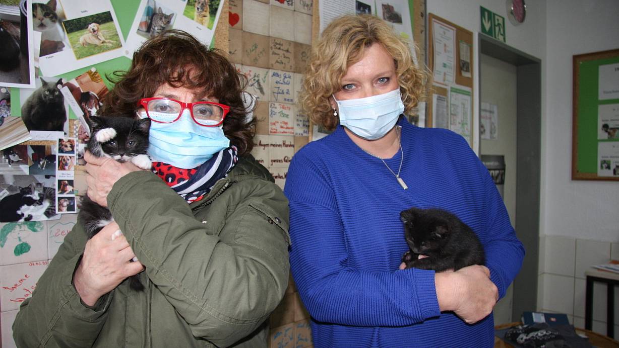 Die Beiden hatten Glück: Die Katzenbabys, die Renate Siekkötter (l.) und Kathrin Sander hier auf dem Arm haben, kamen in gutem Zustand ins Tierheim. Häufig erleben die Tierschützer aber Erschreckendes. | © Gregor Winkler