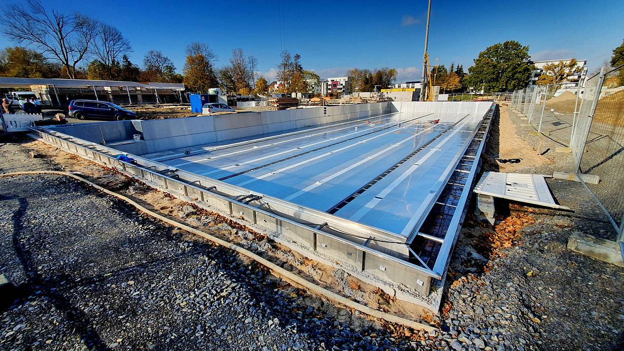 Das 50-Meter-Becken wurde erst vor ein paar Tagen mit Edelstahlplatten ausgekleidet. | © Gerald Dunkel