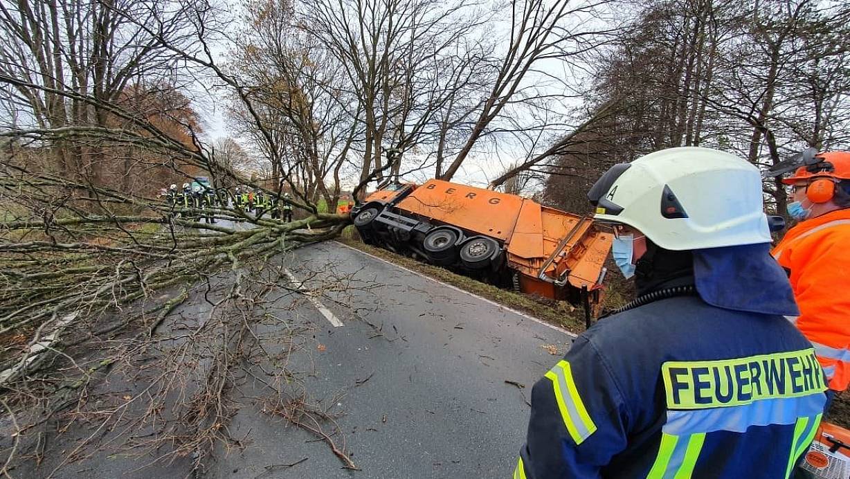 Die Straße ist ab Ortsgrenze in Richtung Enger gesperrt. Ein Rettungshubschrauber wurde alarmiert.