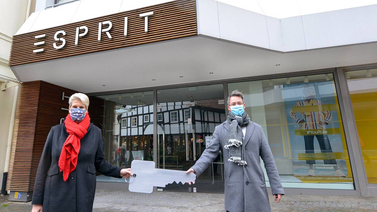 Neue Impulse für die Innenstadt: Bürgermeisterin Susanne Rutenkröger und Ralf Grund vor einem der zehn aktuell verfügbaren Leerstände. Foto: Stadt Bünde / Karl-Hendrik Tittel | © Karl-Hendrik Tittel