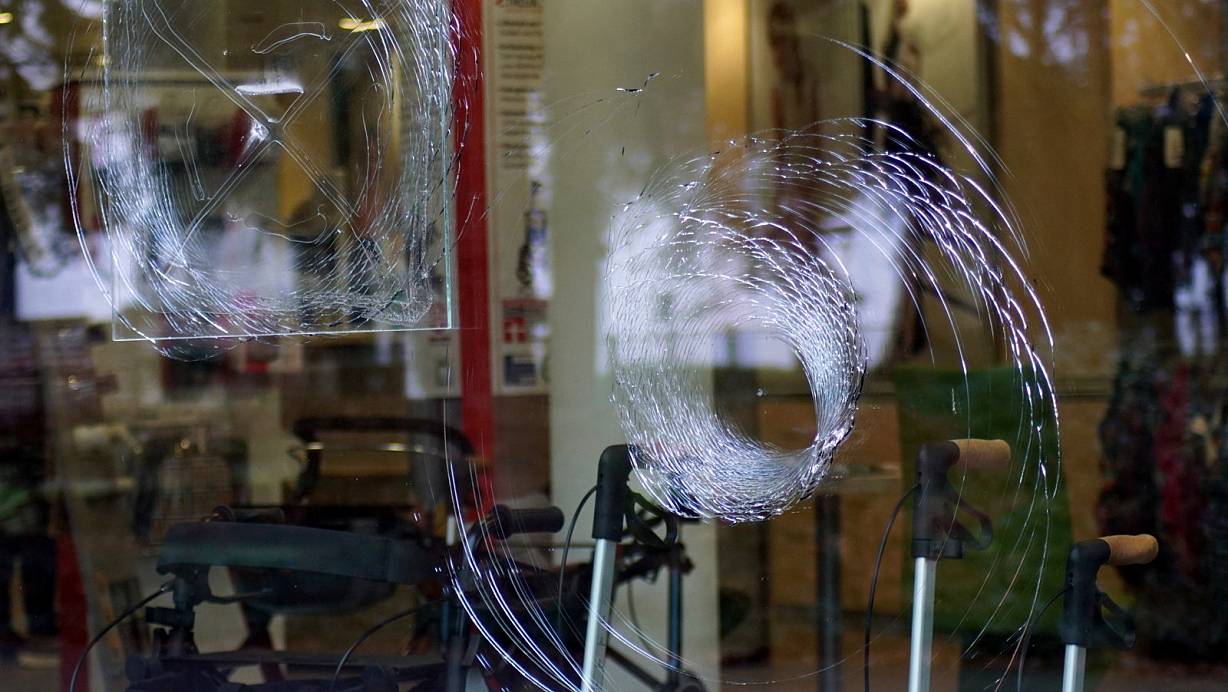 Die Vandalismus-Schäden sind am Schaufenster sichtbar: Die rechten Risse sind in dieser Woche entstanden. | © Niklas Krämer