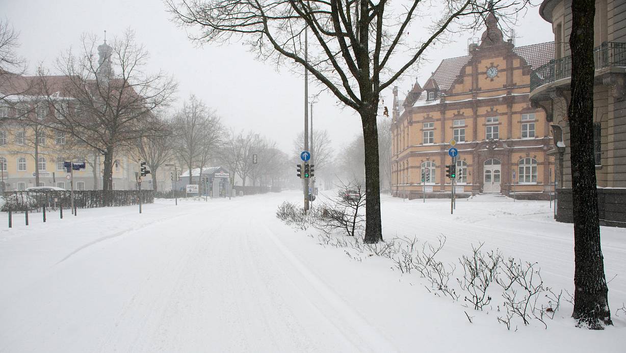 Auf der sonst viel befahren Hauptverkehrsachse Berliner Straße/Auf der Freiheit in Herford sorgt der Schnee für Ruhe. | © Ralf Bittner