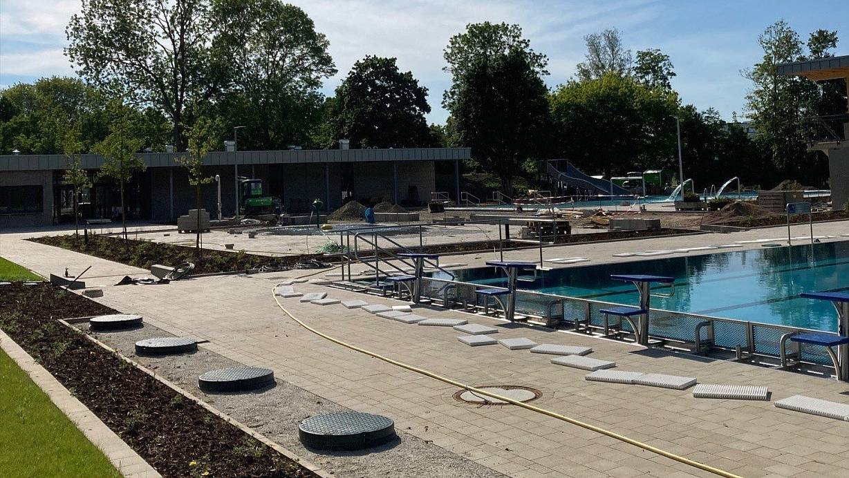 Im neuen Bünder Freibad beginnt ein Wettlauf gegen die Zeit. Denn bis zur Eröffnung stehen im neuen Schwimmbad noch einige Arbeiten an.