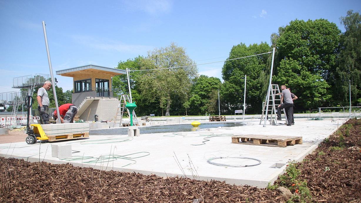 Das Bünder Freibad ist aktuell noch eine Baustelle. Bis zum 12. Juni sollen fast alle Arbeiten erledigt sein. | © Florian Weyand