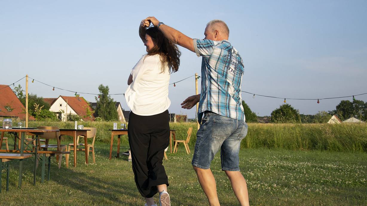 Alexandra Wegner (l.) und Wolfgang Restmeier nutzen die Gelegenheit in der Schlattheide, um das Tanzbein zu schwingen | © Joel Beinke