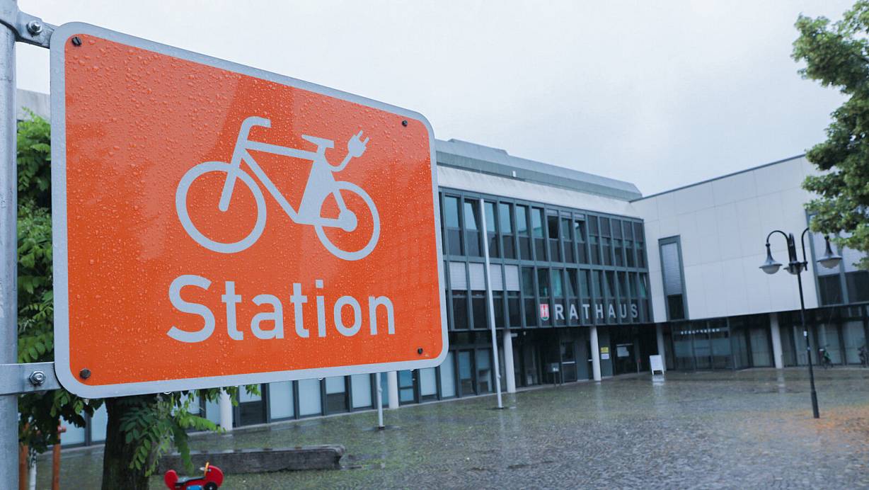 Am Rathaus in Bünde gibt es eine Stationen, an denen E-Bikes geladen werden können. | © Angelina Kuhlmann