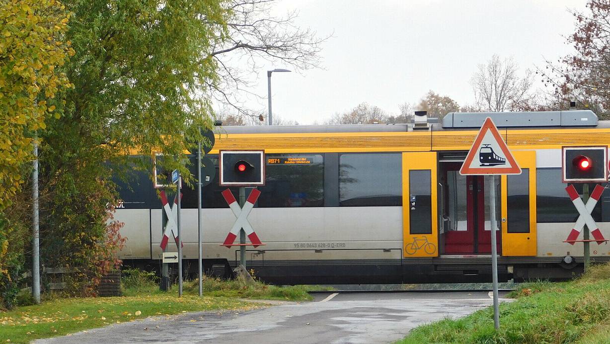 Frau rollt mit Auto auf Bahnübergang: Eurobahn muss notbremsen