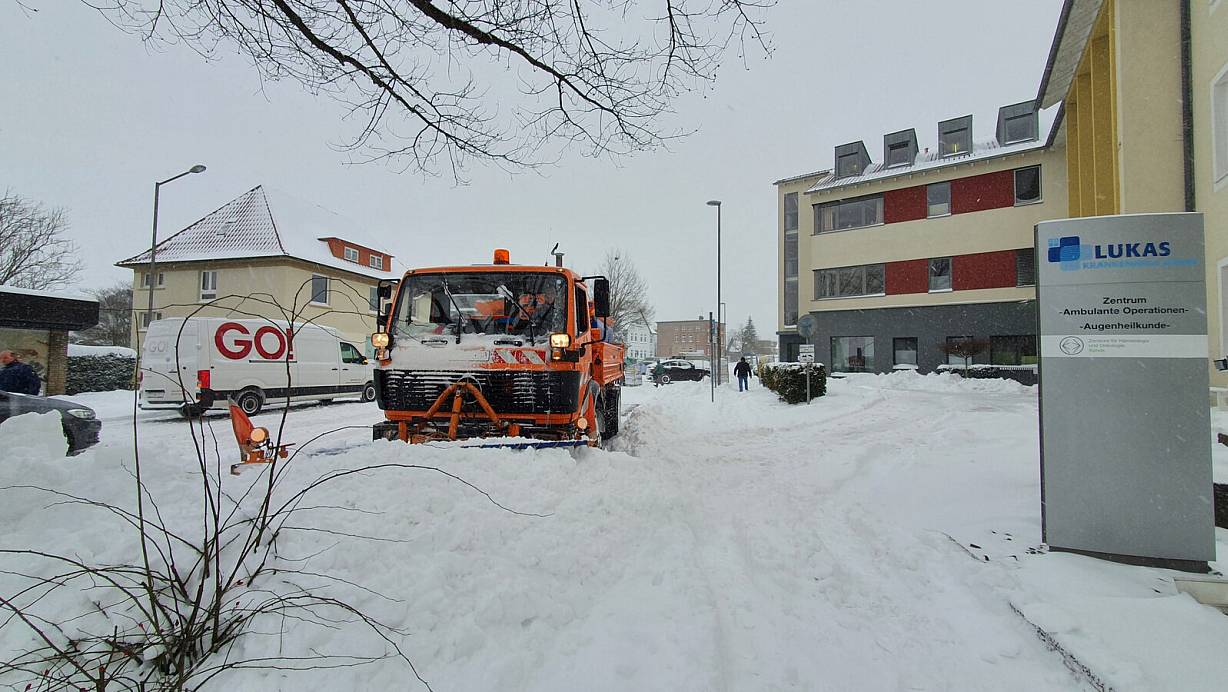Im vergangenen Februar sorgten heftige Schneefälle vor dem Bünder Krankenhaus für heikle Momente im Straßenverkehr. | © Gerald Dunkel