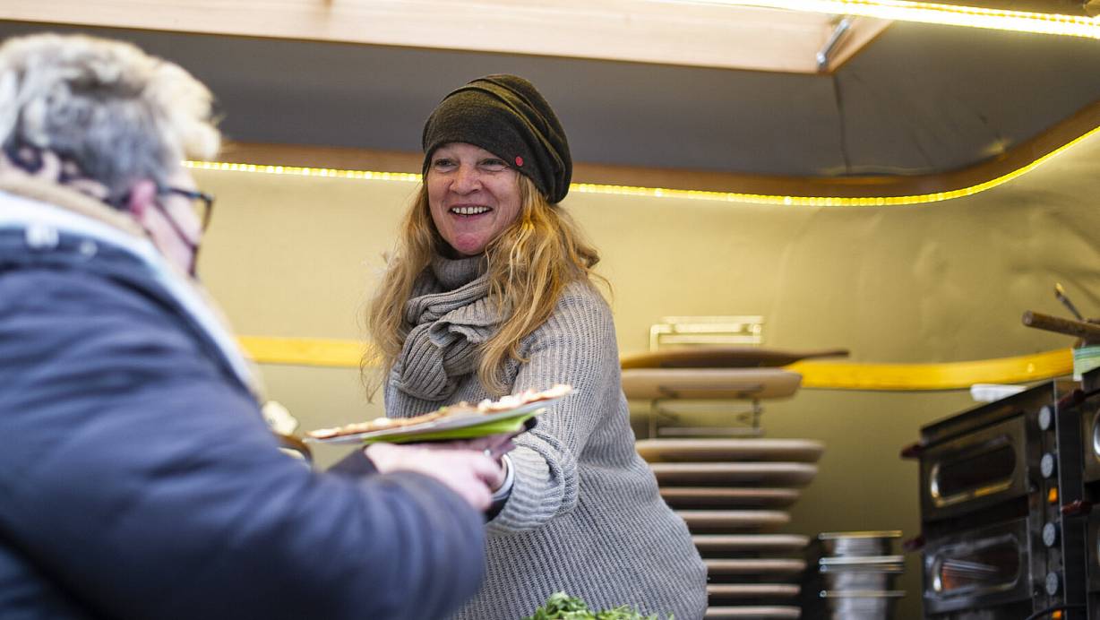 Kerstin Maquard backt in ihrem umgebauten Nagetusch von 1972 Flammkuchen. | © Joel Beinke