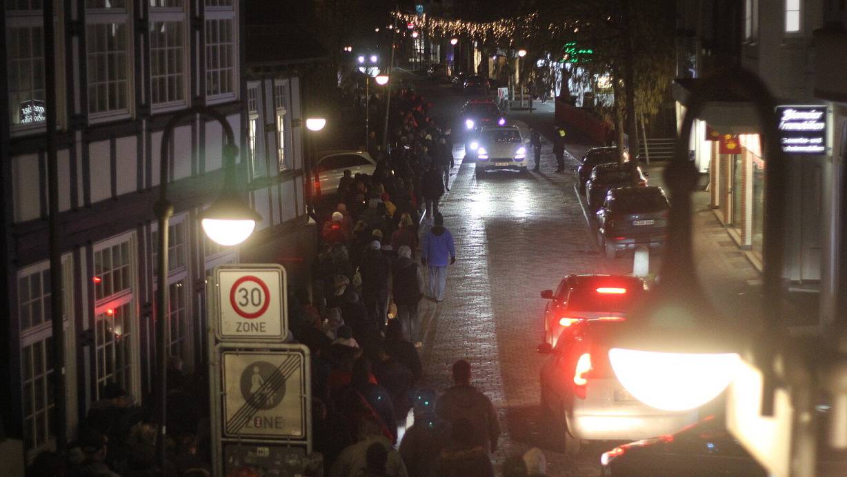 Die "Spaziergänger" ziehen bei einem früheren Protest in Bünde durch die Bahnhofstraße. | © Florian Weyand