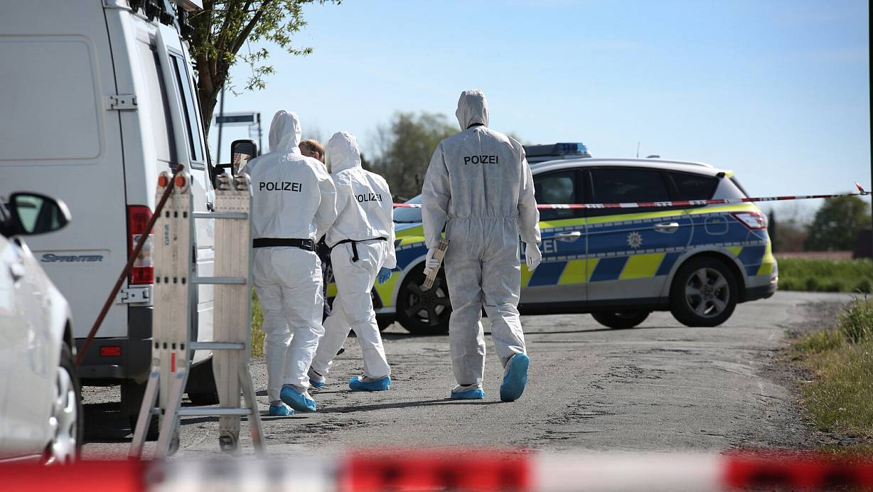 Im Mai 2021 untersuchen Kriminaltechniker ein Haus an der Pestalozzistraße in Hüffen. Zuvor ist dort ein moldawischer Arbeiter brutal getötet worden. |
