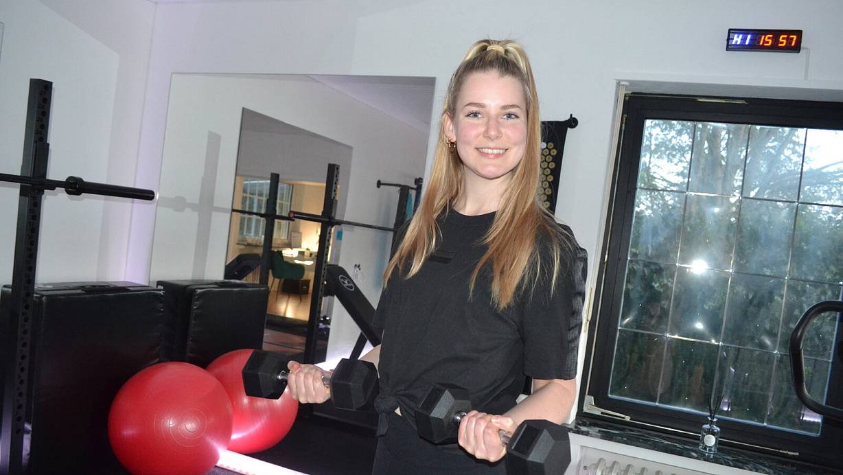Benita Thenhaus in ihrem eigenen Fitnessstudio in Kirchlengern, in dem sie Personaltrainings anbietet. | © Peter Heidbrink