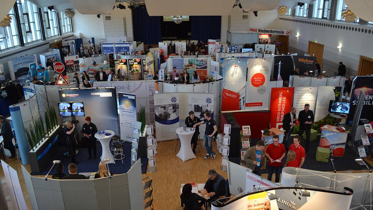 Viele Unternehmen haben einen Stand auf der Messe eröffnet und beraten zu den Ausbildungsberufen, die sie anbieten. | © Peter Heidbrink