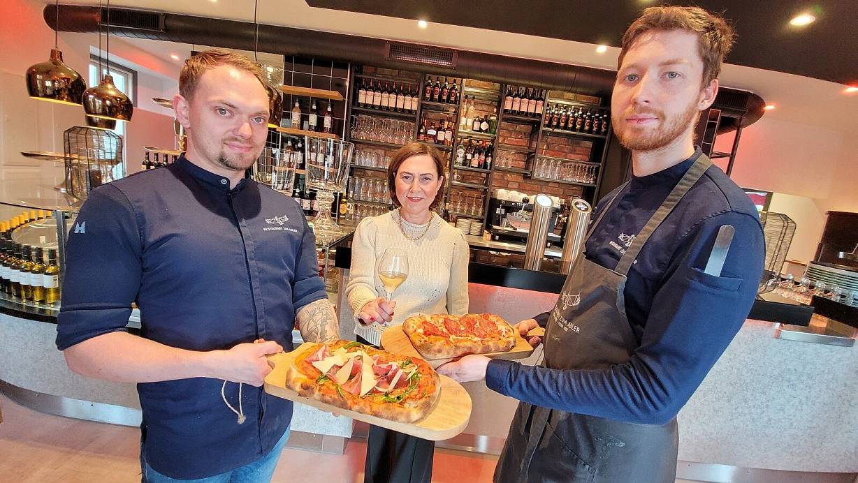 Das Team des Restaurants "Zum Adler": Küchenchef René Schmidt, Inhaberin Nuray Hartmann und Sous-Chef Marian Matthe hier bei der Eröffnung ihres neuen Bistros "Adler's Deli". | © Florian Weyand