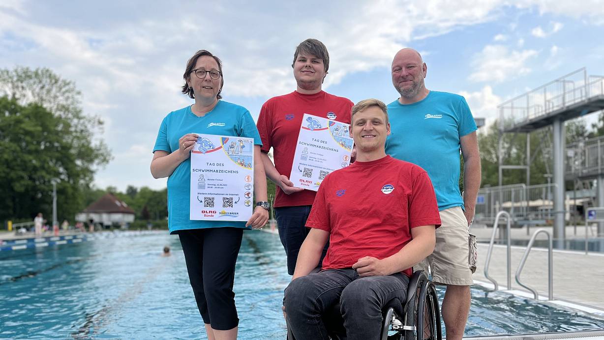 Kerstin Lech, Niklas Weber, Jan Hensiek und Holger Sundhaupt freuen sich auf viele neue Schwimmabzeichen-Inhaber. | © Jenny Westhues