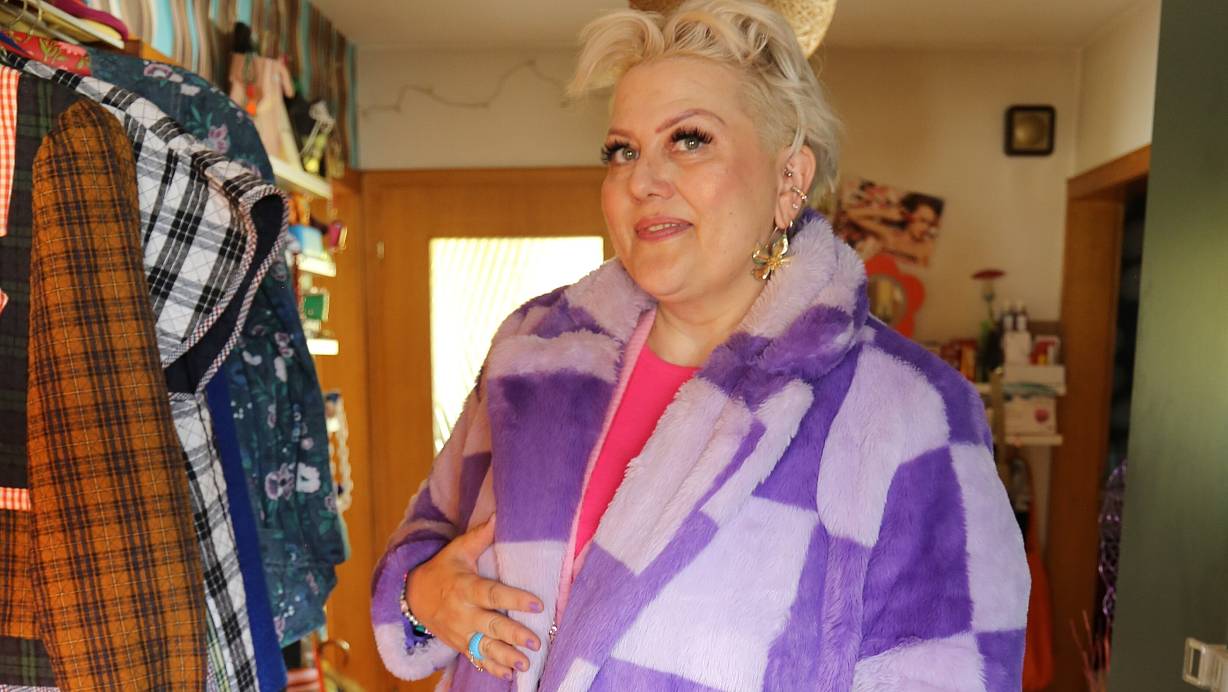 Diesen lila-karierten Plüschmantel hat Nady Laukötter im Winter gerne getragen. | © Lena Kley