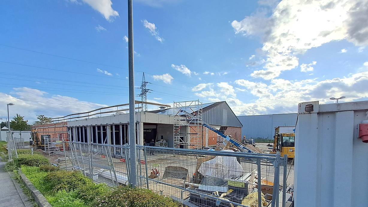 Schon bald sollen Lebensmittel & Co. an der Borriesstraße in Bünde beim Discounter über das Kassenband gehen. Aktuell wird aber noch fleißig gewerkelt.
