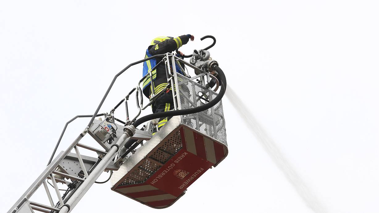 Wasser marsch: Aus luftiger Höhe wird der Brand auch von außen via Drehleiter bekämpft. | © Claus Frickemeier