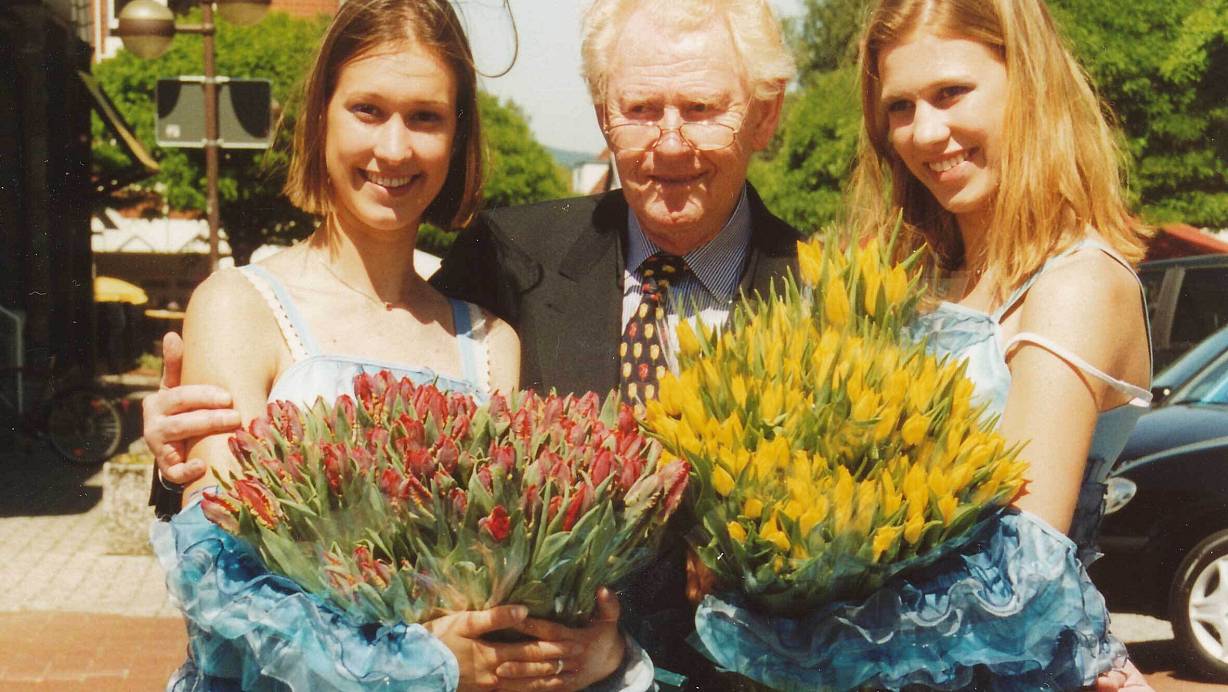 Blumensträuße und Krawatte des Komponisten erinnern, hier bei der Eröffnung der Landesgartenschau im Jahre 2000 auf dem Aqua Magica Gelände, an seinen wohl bekanntesten Titel „Tulpen aus Amsterdam“. | © Archiv Militzer