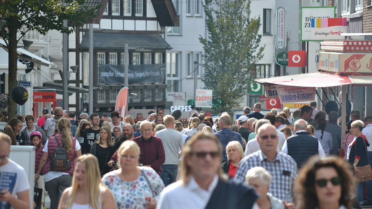 An diesem Verkaufsoffenen Sonntag im Herbst 2018 war es richtig voll in der Bünder Innenstadt. | © Katharina Eisele