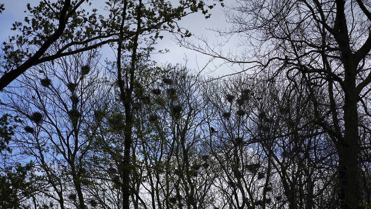 Bis zu 200 Brutpaare nisten derzeit in Hunnebrock. Saatkrähen sind geschützt und dürfen deshalb nicht bejagt werden. Bis zu 25 Nester befinden sich allein im Bereich der Kita „Krempoli“. Dort leiden Kinder und Mitarbeiter unter dem Vogelkot. | © Gerald Dunkel