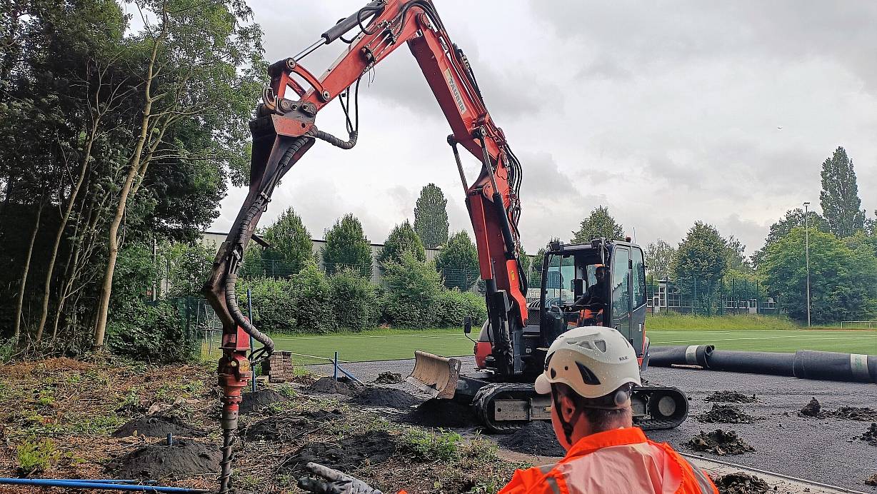 Bei der Suche nach einem Blindgänger am Sportplatz Hunnebrock, hat eine Spezialfirma mehrere Löcher in die Erde gebohrt. Es wird voraussichtlich noch Monate dauern, bis die wieder geschlossen sind. | © Sven Hauhart