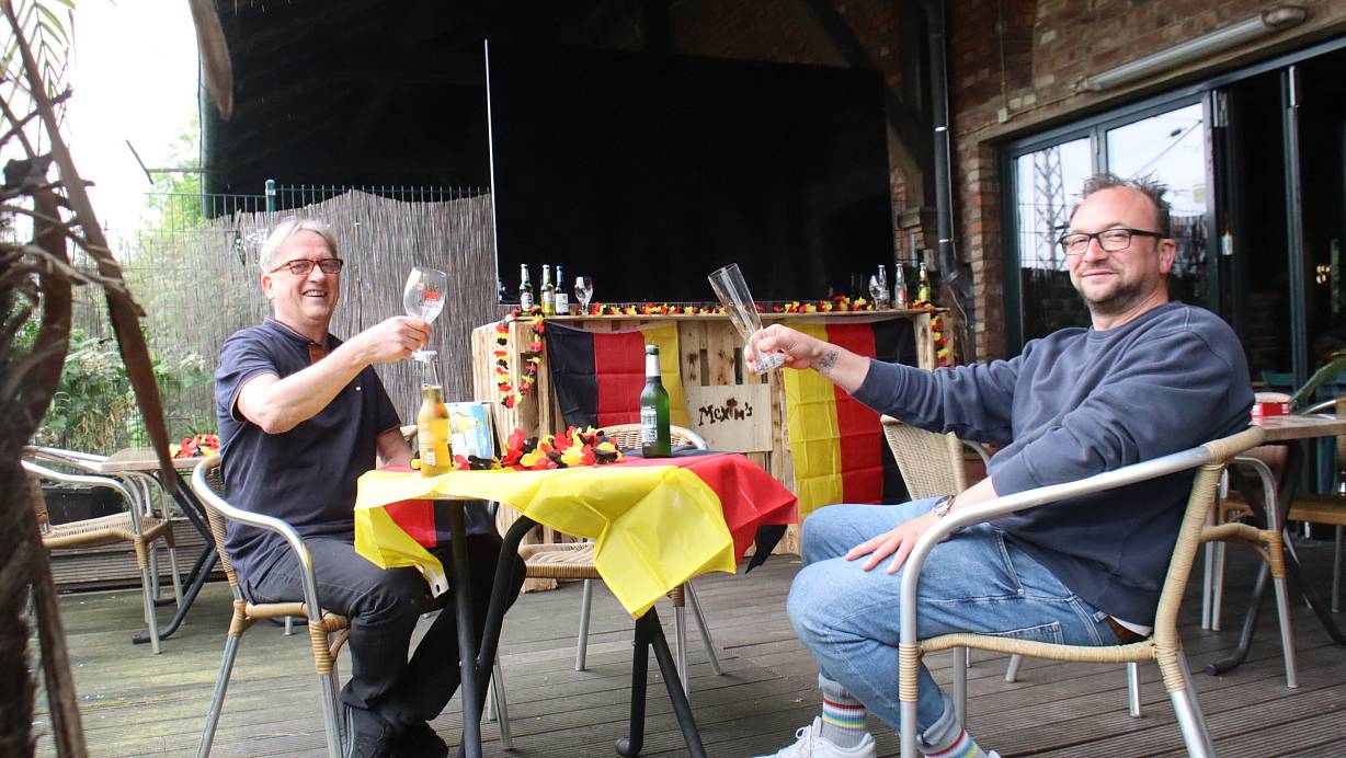 So alleine wie auf diesem "Vor-EM-Foto" haben Andreas Köppe (l.) und Mario Fürstenau vom Mexim's schon seit Wochen nicht mehr auf ihrer Terrasse gesessen. | © Meiko Haselhorst