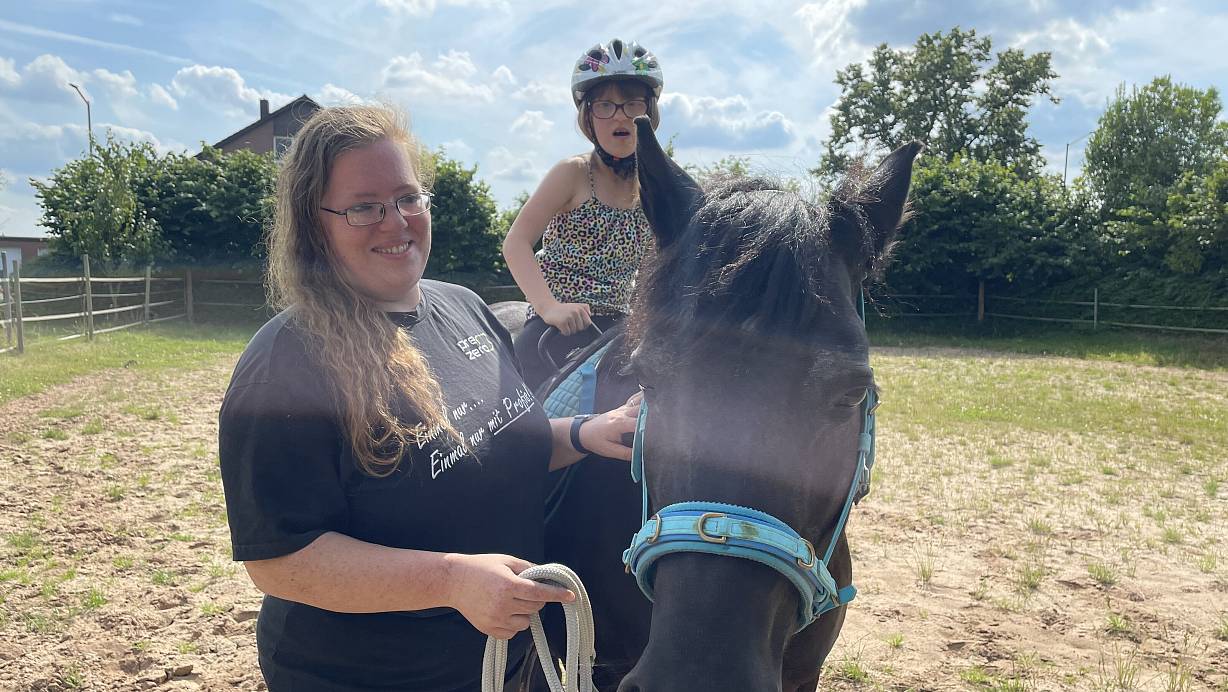 Tatsächlich traut sich die achtjährige Hannah schließlich, auf Fellpony Mary-Lou zu reiten. Schritt für Schritt fasst das Mädchen immer mehr Vertrauen zu dem Tier, geduldig begleitet von Ponybesitzerin Mareike Ulbrich. | © Natalie Gottwald