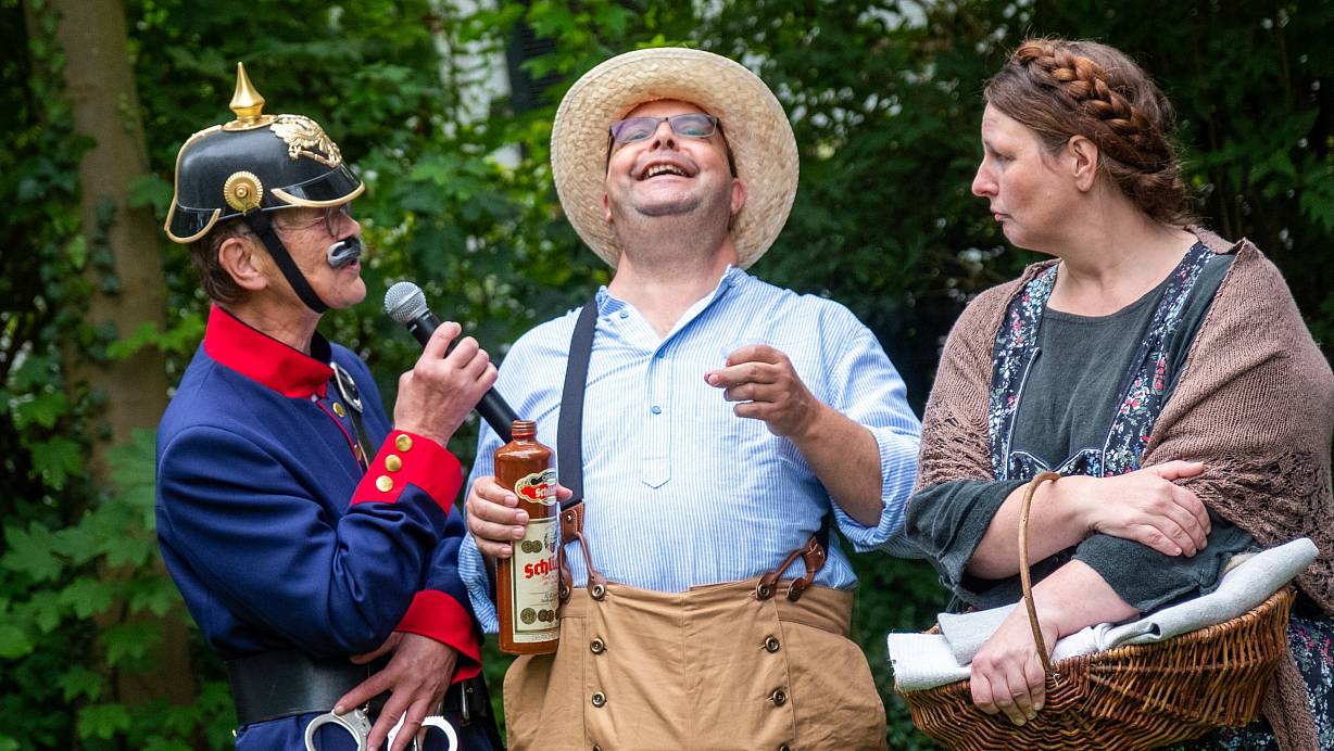 Die Zeitreisenden schlüpfen in gut 20 verschiedene Rollen und lassen so die Bünder Geschichte des 19. Jahrhunderts unterhaltsam lebendig werden. | © Ralf Bittner