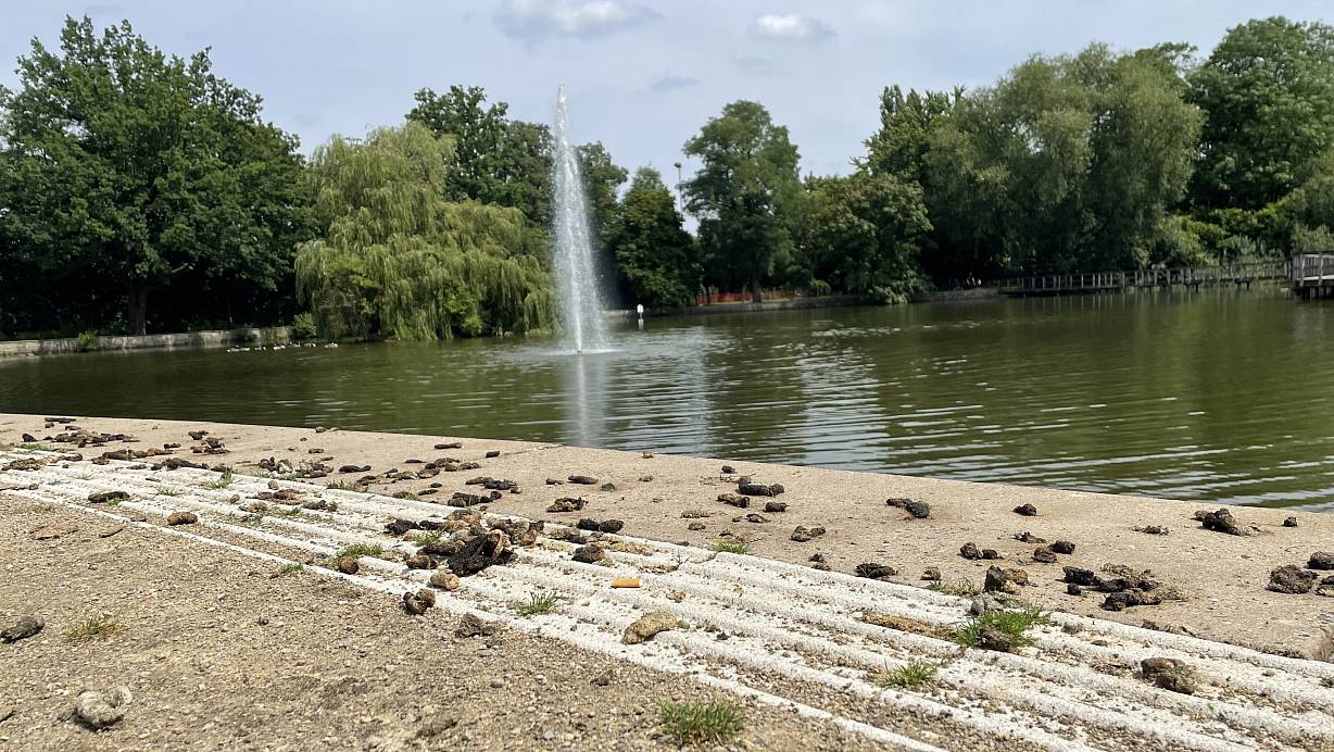 Ein eigentlich idyllischer Blick auf den Steinmeister-Teich samt Fontäne wurde zeitweise von den Verunreinigungen im Vordergrund beeinträchtigt. Inzwischen wurde der Bereich zwar gereinigt, aber spätestens im nächsten Sommer könnte das Problem wiederkehren. | © Natalie Gottwald