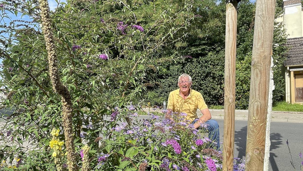 Friedhelm Diebrok vom Nabu freut sich darüber, wie schön die Insektenfreundlichen Stauden in den Beeten entlang der Ernst-Reuter-Straße gedeihen. Da sei die Stadt Bünde "auf einem guten Weg", sagt er. Aber es gäbe auch noch viel Potenzial in der Stadt. | © Natalie Gottwald