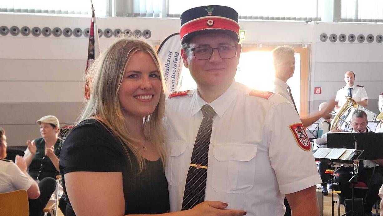 Der 32-jährige Dennis „der Feuerfeste“ Rürup wird gemeinsam mit Viktoria „Vicky die Arminin“ Wolf nun ein Jahr lang das Bünder Schützenvolk regieren.