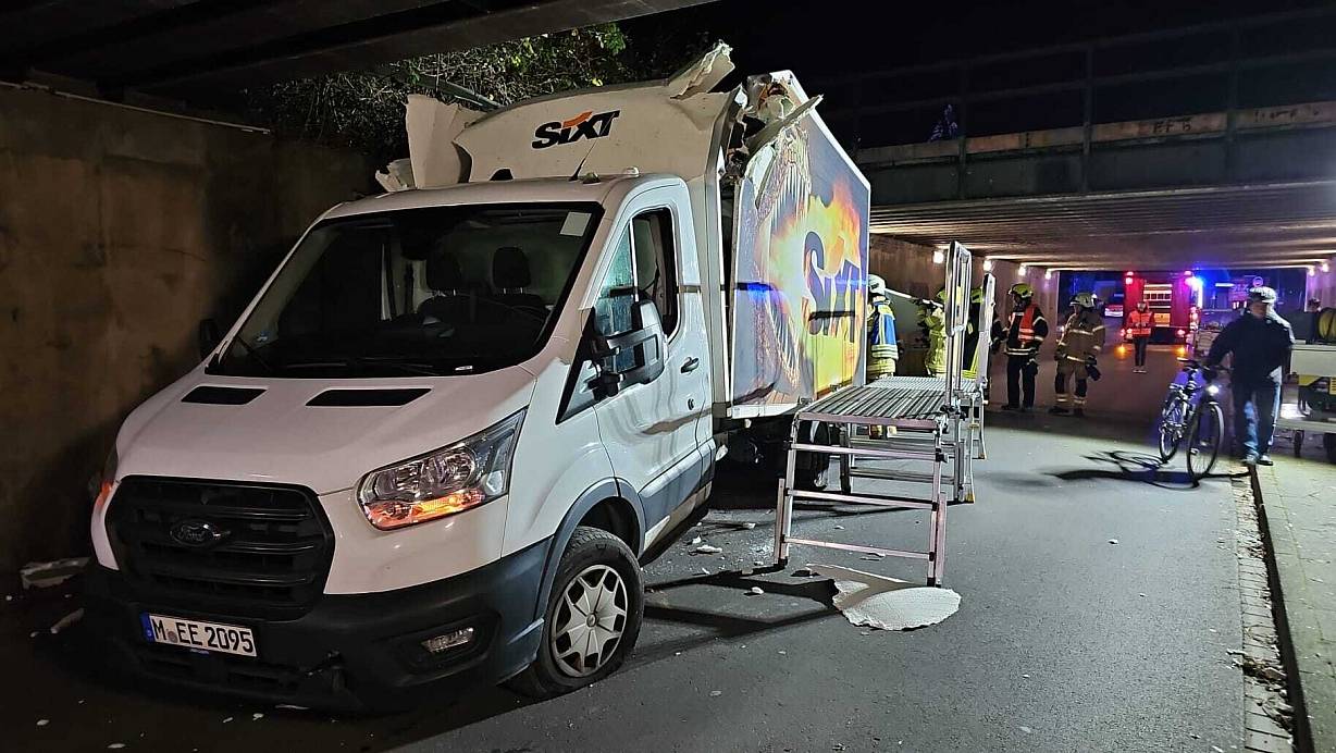 Kleinlaster bleibt unter Bünder Bahnbrücke stecken - Bahn sperrt ein Gleis