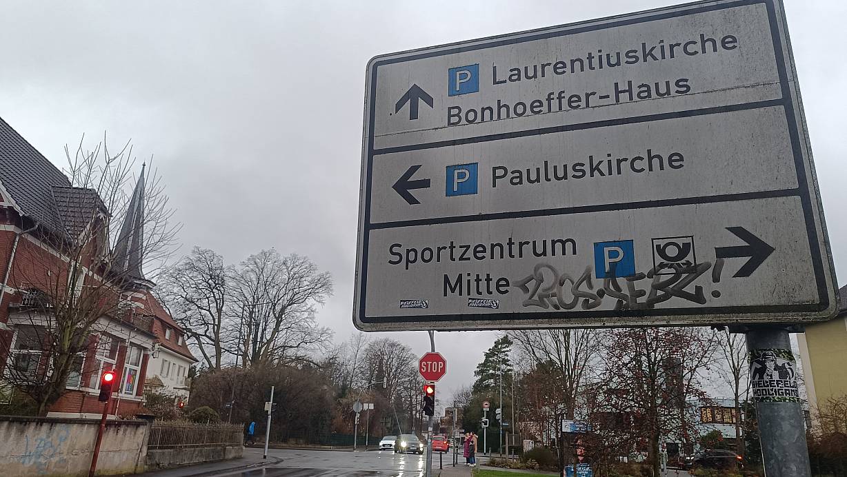 Große Schilder weisen auf die zentralen Parkplätze in der Bünder Innenstadt hin. | © Sven Hauhart