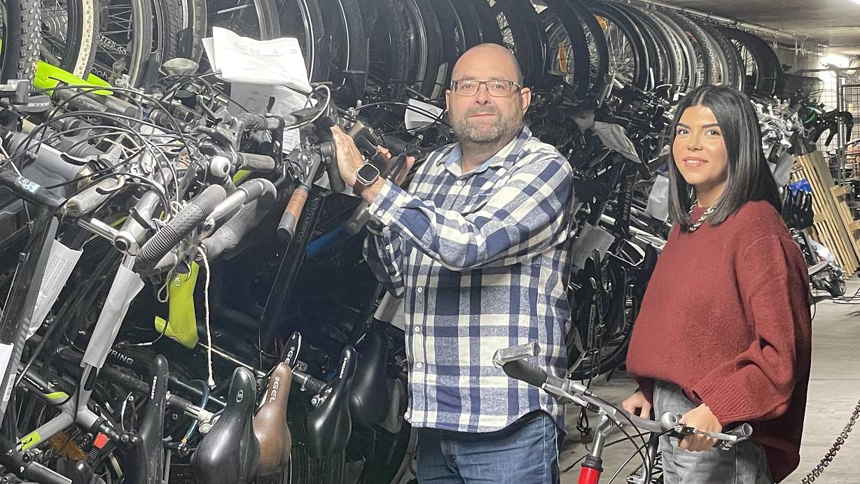 Thomas Koschnick und Büsra Aslanbay-Simsek betreuen im Bünder Bürgerbüro die Fundsachen und haben dabei schon einige unglaubliche Geschichten erlebt. Hier stehen sie im Rathauskeller neben den derzeit rund 80 gefundenen Fahrrädern, die auf ihre Eigentümer warten. | © Natalie Gottwald