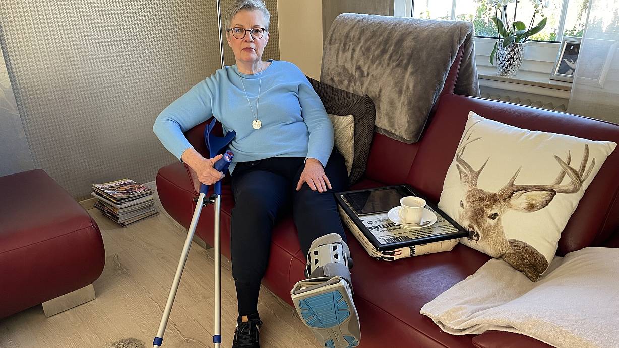 Seit ihrem Sturz ist Claudia Kronsbein auf Krücken und Orthese angewiesen. Notgedrungen verbringt sie die meiste Zeit des Tages sitzend auf der Couch. Ihr Mann unterstützt sie im Alltag - und serviert ihr auch mal eine Tasse Kaffee. | © Shannon-Lee Bendig