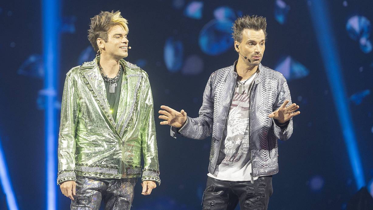 Die Magier Chris Ehrlich (l.) und Andreas Ehrlich sind derzeit live auf Tour mit ihrer Show "Diamonds – das Beste aus 10 Jahren". Bei einer Generalprobe musste jetzt Andreas Ehrlich ein paar Haare lassen. | © IMAGO/Andreas Weihs