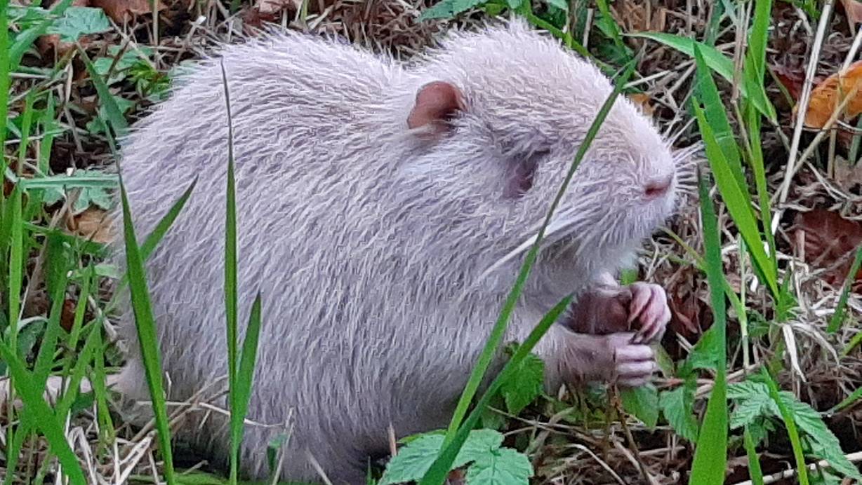 Seltene weiße Nutria an der Else in Bünde gesichtet