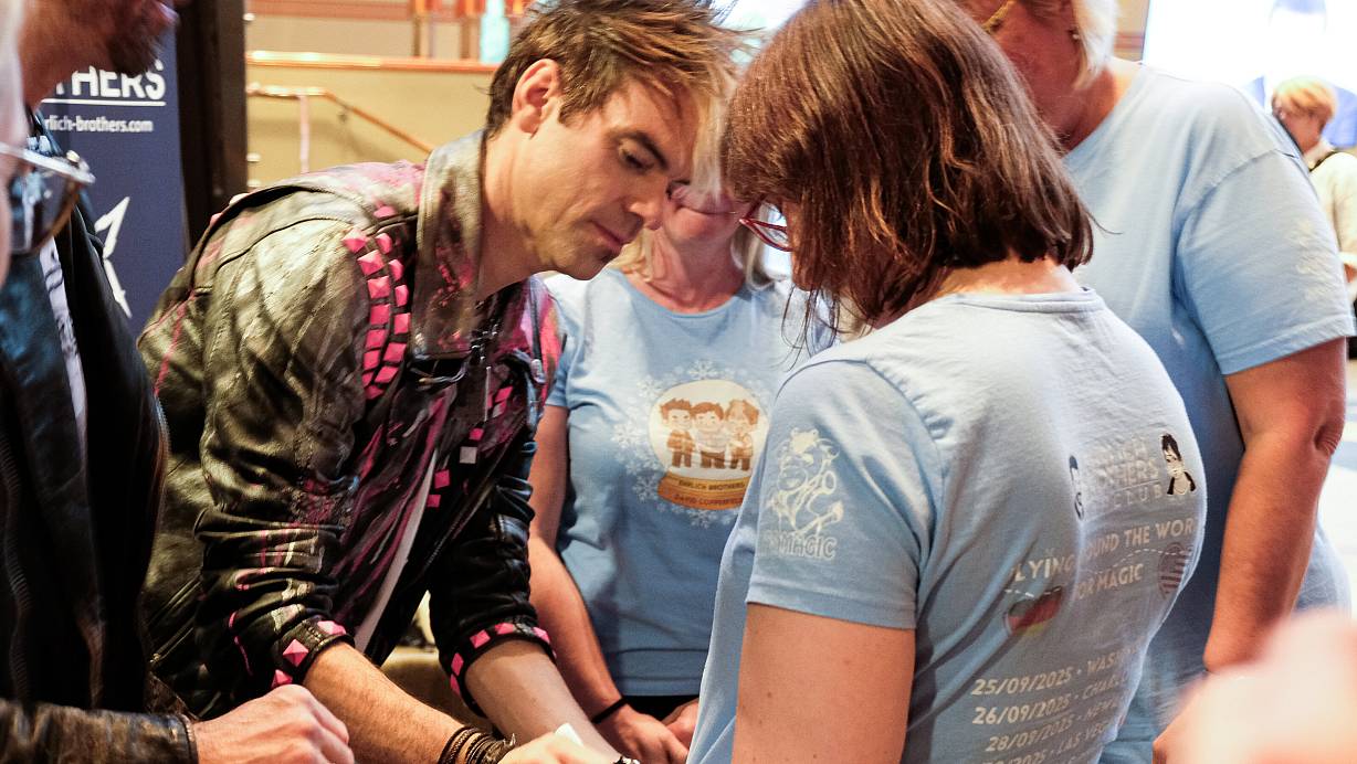 Chris Ehrlich unterschreibt nach der Show auf den T-Shirts der weitgereisten Fanclub-Mitglieder aus NRW. | © Philipp Kaufmann