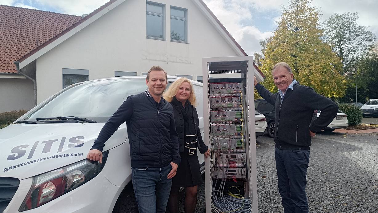 Alexander Faist (v.l.), Iryna Böke und Andreas Schlüter führen die Geschäfte der 2020 gegründeten Firma "STS Systemtechnik Elektroakustik". | © Sven Hauhart