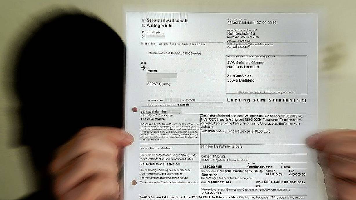 Die "Ladung zum Strafantritt" in der JVA Bielefeld-Senne hatte der Bünder am 7. September erhalten. Das Strafmaß: 55 Tagessätze á 30 Euro = 1.650 Euro. Anzutreten binnen eines Monats. Mit Schreiben vom 15. September 2010 teilte die Staatsanwaltschaft Bielefeld Rechtsanwalt Falk mit, dass W. lediglich sein Einkommen mit 900 Euro angegeben und die Monatsmiete mit Nebenkosten auf 480 Euro beziffert habe. Gleichzeitig habe er eine Reduzierung der Rate auf 30 Euro beantragt, was abgelehnt wurde. Erst nach der Ladung zum Strafantritt am 7. September sei ein Beleg über die monatlichen Einkünfte eingereicht worden.