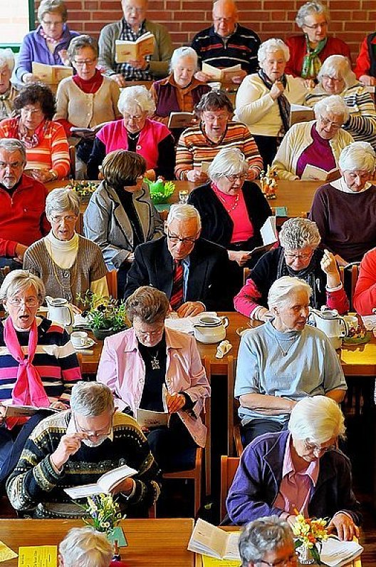 Bünde. Vom eisigen Wind, der draußen vor dem Dietrich-Bonhoeffer-Haus unablässig weht, bekommen die etwa 180 Teilnehmer des Frühlingsfestes nichts mit. Strahlend scheint die Sonne durch die Fenster. Und die "Neuen Alten" lassen sich Kaffee und Kuchen schmecken, bevor gemeinsam zum ersten Lied angestimmt wird.