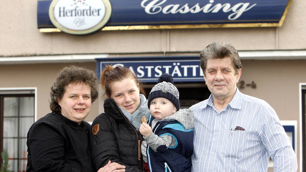 Seit 1920 war die Gaststätte in Familienbesitz. Cassings Urgroßeltern hätten das Haus gekauft. „Aber damals natürlich noch ohne Saal und Kegelbahn. „Wir haben nur auf alten Fotos gesehen, dass es auch schon davor eine Gaststube in diesem Haus war. Die hieß Brüggemann.“ Von den Urgroßeltern übernahmen Hermann und Alwine, dann Heinrich und Waltraud Cassing die Gaststätte. Seit 2001 war Anke Cassing Inhaberin. Nach ihrer Ausbildung als Köchin im Haus des Handwerks 1985 kochte die heute 49-Jährige zunächst im Herforder Domhotel und dann im Schinkenkrug in Herford, ehe sie 1994 in Enger in den elterlichen Betrieb einstieg. Derzeit bewirtschaftet sie die Gaststätte zusammen mit Ehemann Udo Menke und ihren Kindern Sonja Diekmann und Marco Streiberger. „Ein richtiger Familienbetrieb.“