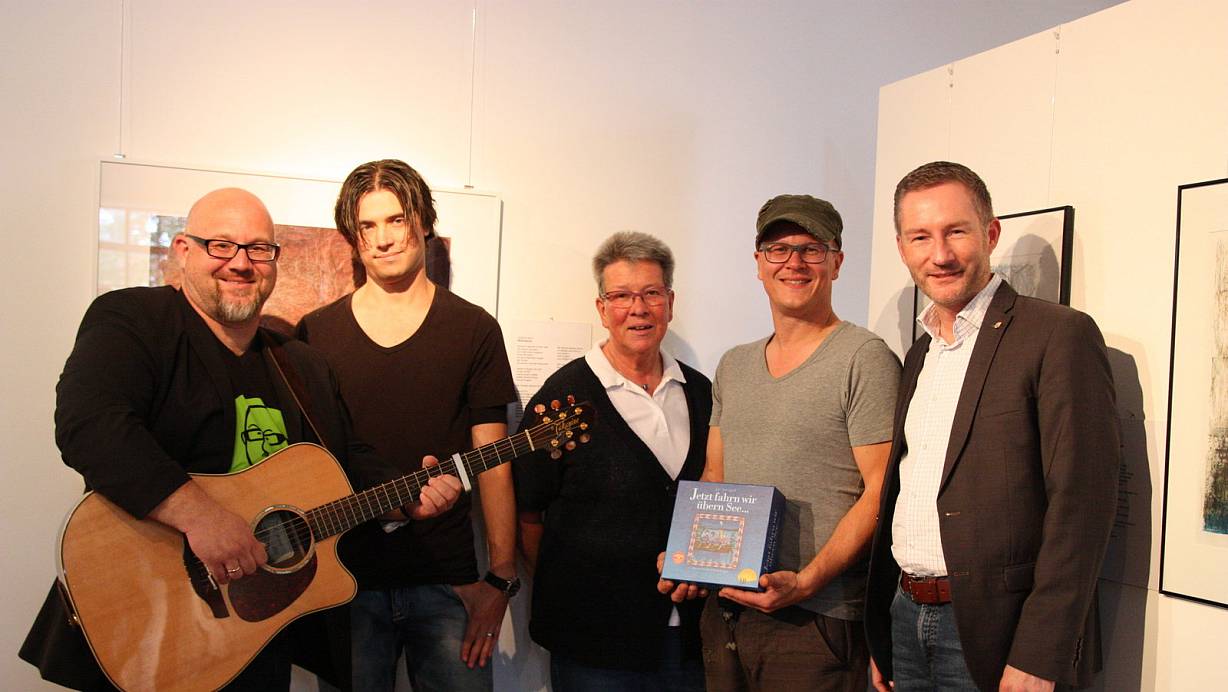 In der Gerberei-Galerie: Sebastian Dold (v. l.), Sven Kreienberg, Angela Franke, Jens-Henning Gläsker und Stephen Paul haben gemeinsam an der Idee vom Volkslieder-Nachmittag für Kinder gearbeitet. | © Britta Bohnenkamp-Schmidt
