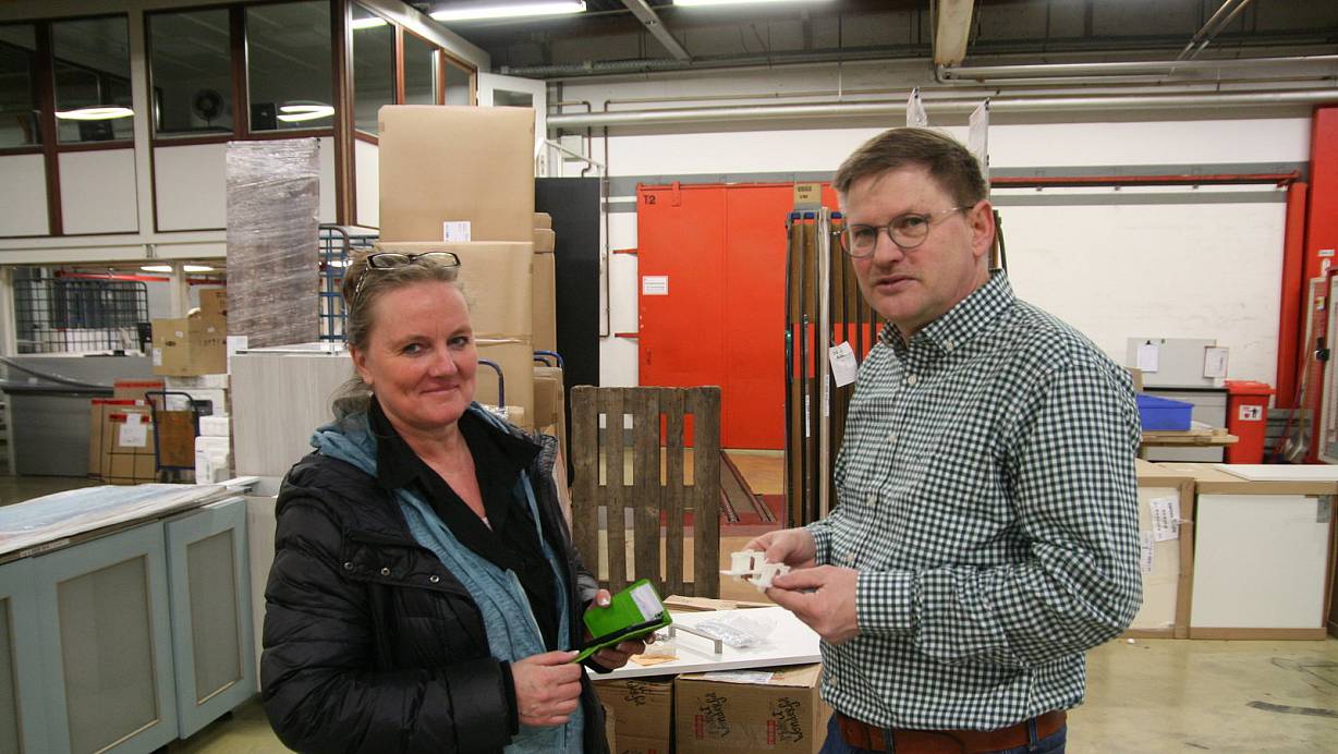 Hat gut Lachen: Beate Dupré hat sich eine komplette Küche gekauft – und einige tausend Euro dabei gespart. Bei Andreas Capito holt sie sich jetzt noch ein paar Ersatzteile. | © Martina Chudzicki