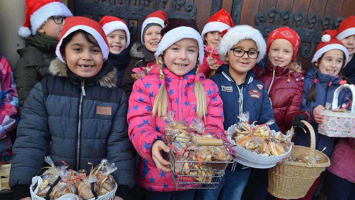 Die Kinder aus der Pinguin-Klasse der Grundschule Enger verkauften Kekse auf dem Adventsbummel und in der Stadt. | © Mareike Patock