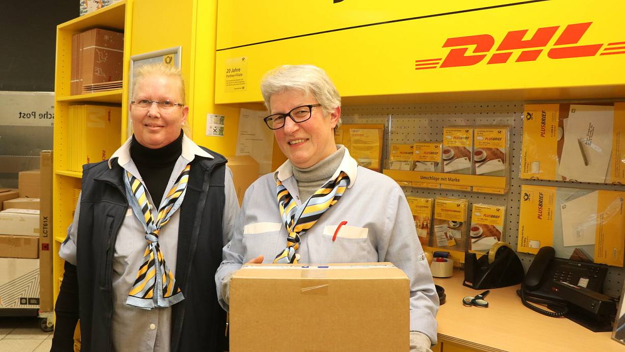 Ulrike Brune (r.), hier mit einer Kollegin, leitet die Postfiliale im Engeraner E-Center. | © Ekkehard Wind