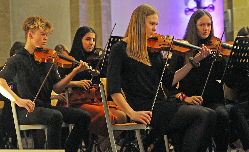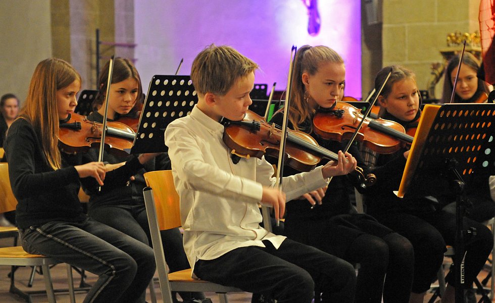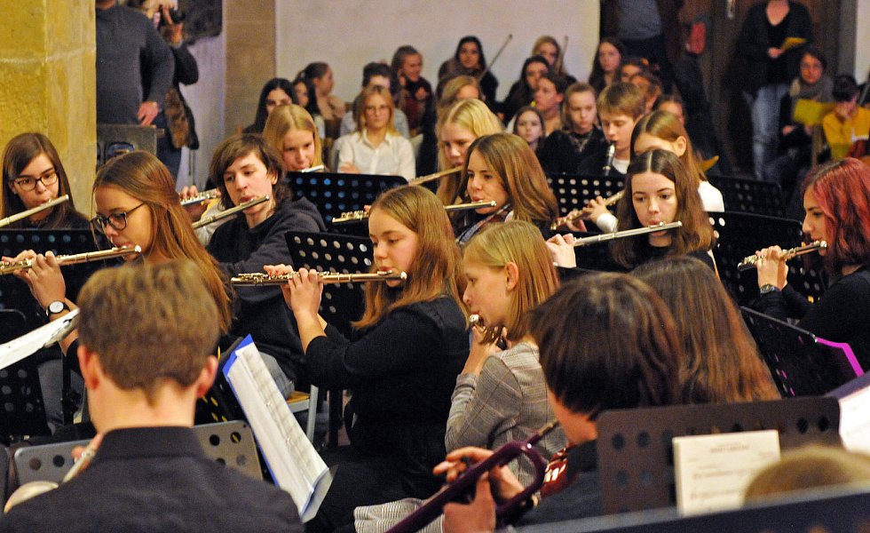 Aber auch weniger populäre weihnachtliche Stücke stellten die Schülerinnen und Schüler vor: wie das polnische „Lulajze, Jezuniu", das die Kinder der Chorklasse des fünften Jahrgangs mit fast engelsgleichen, zarten Stimmen sangen, oder das lettische „Es gulu gulu", klangvoll intoniert von Chor, Chorklasse und Kammerorchester.
