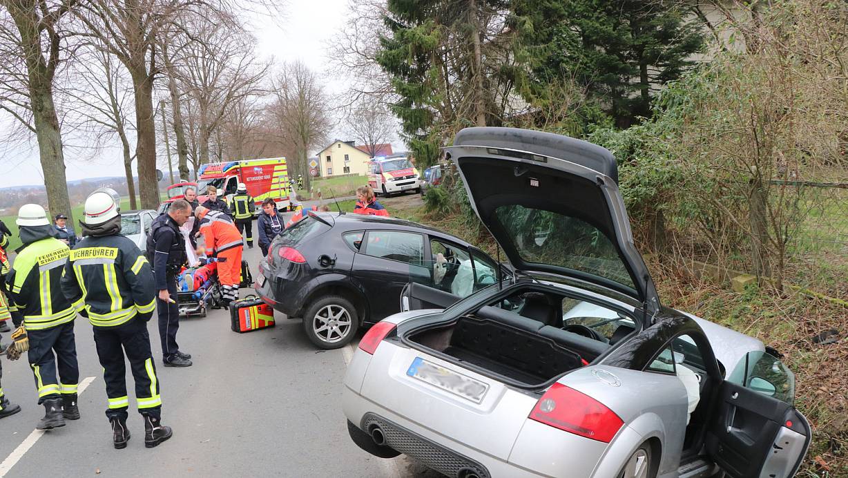 Im Graben landeten am Donnerstag, 5. März, Nachmittag ein silberner Audi TT (vorn) und ein Seat Leon nach einem Unfall auf der Werther Straßen. Die Straße war daraufhin voll gesperrt. Die drei Verletzten kamen ins Krankenhaus | © Andreas Sundermeier