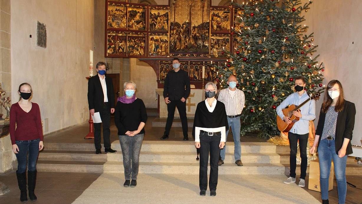 Johanna Wimmer (v.l.), Joachim Eisemann, Anke Restemeier, Daniel Naurath, Beate Schmidt, Joachim Weber, Christian Wedmann und Maike Schmidt sorgten für einen abwechslungsreichen Gottesdienst. | © Eric Pielsticker